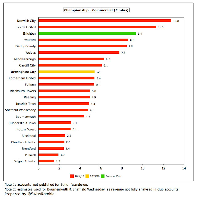 for Brighton in 2014/15 with only four clubs generating more money from this