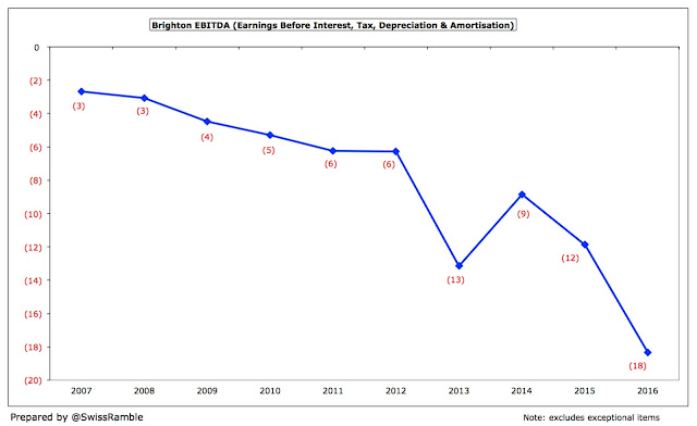 That said, Brighton’s loss of £26 million in 2015/16 is