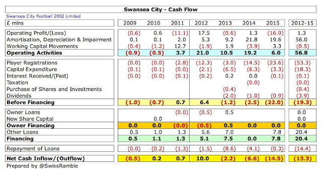 Although Swansea generated £6 million from operating activities, further